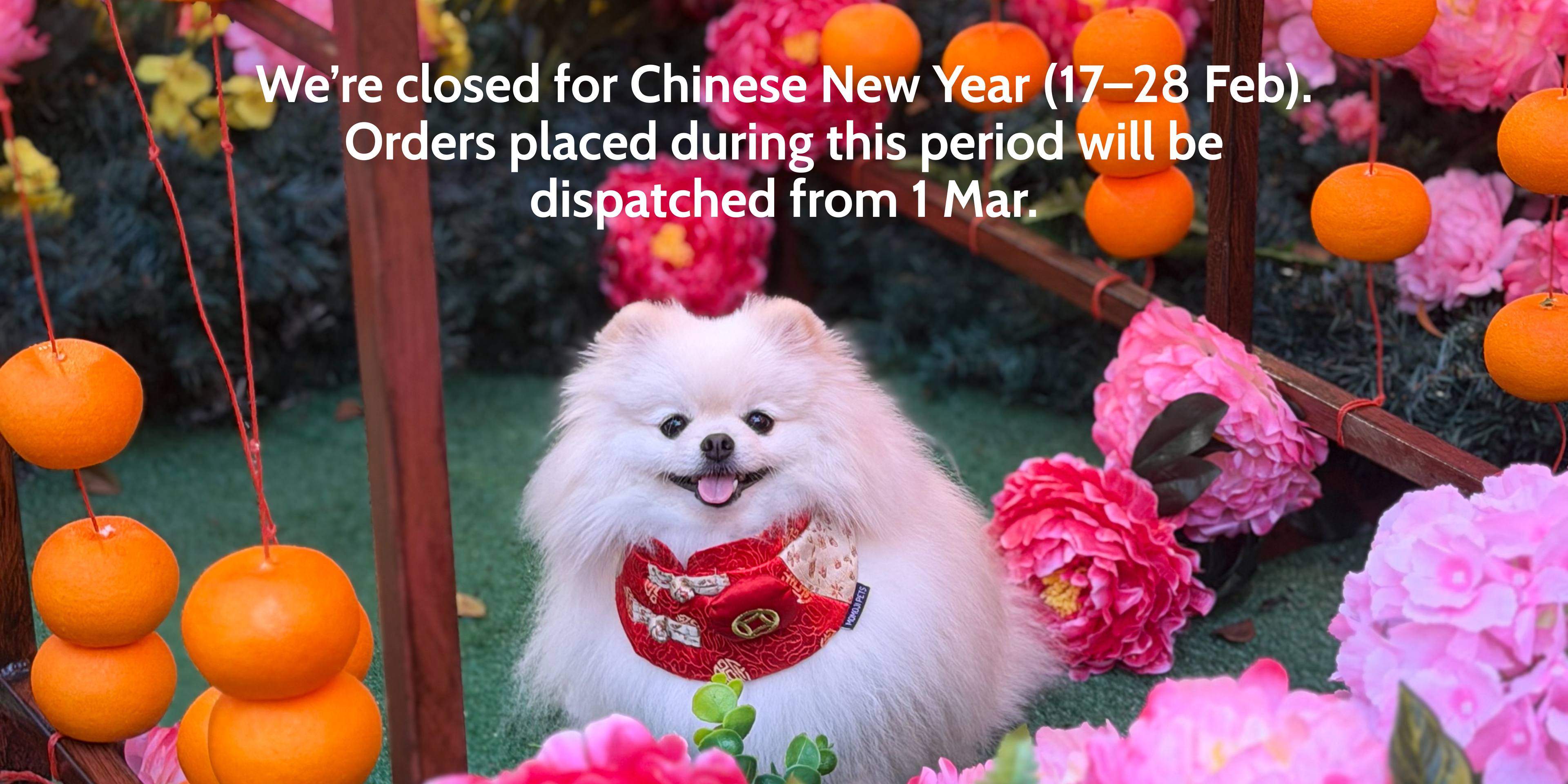 With the most joyous times throughout the year in mind, our festival bibs are designed for great variety of festivals such as Easter, Halloween, Christmas and Lunar New Year. Be our happy furry guest!