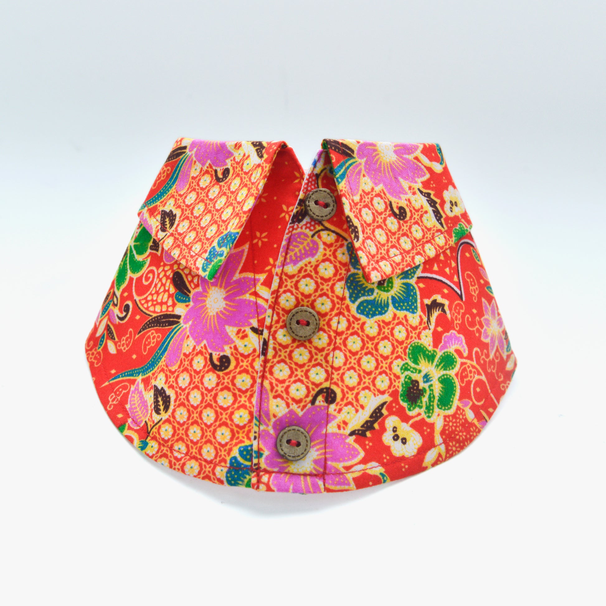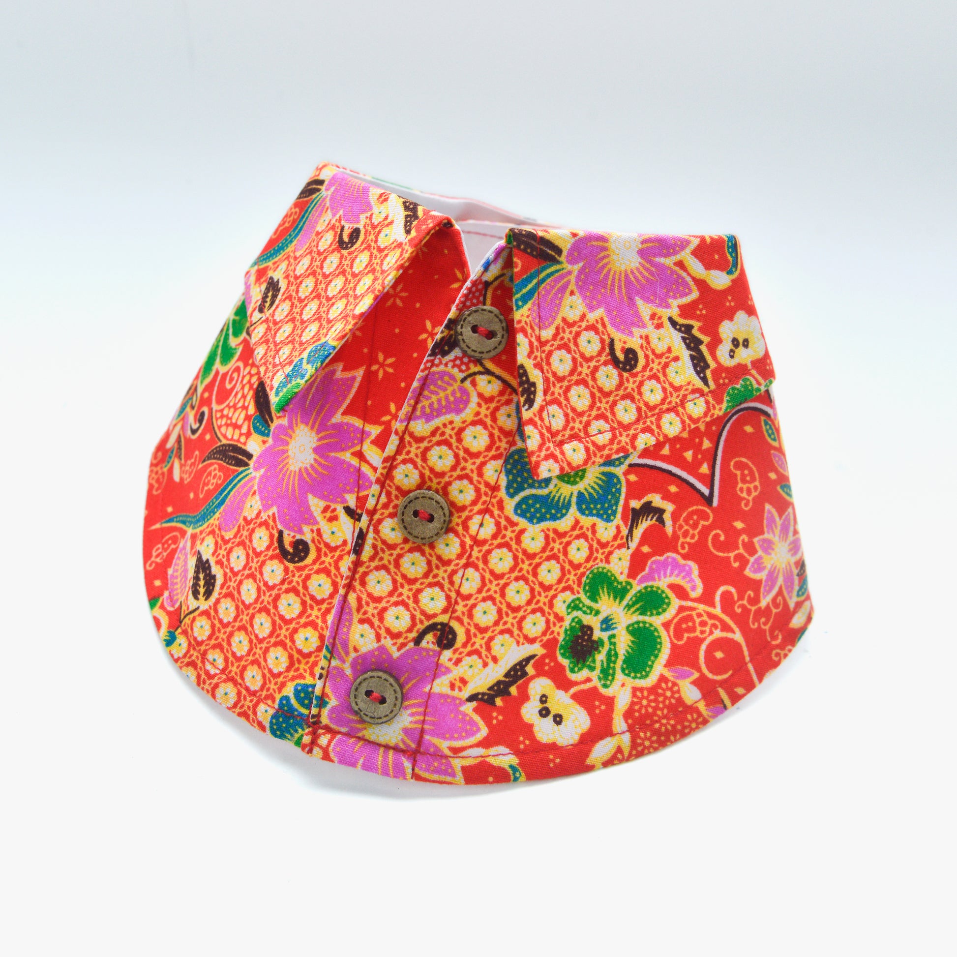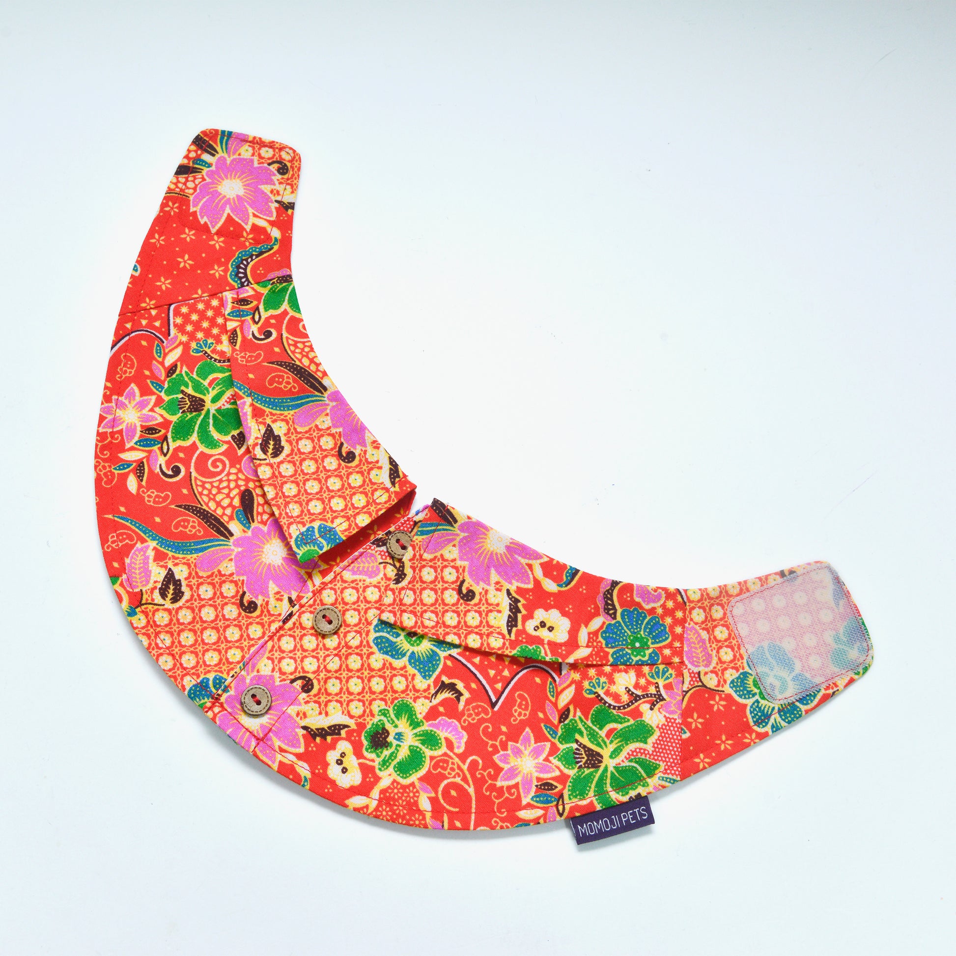 After your pet has worn the bib collar, gently wipe with a clean wet towel. For tough stains removal, engage professional dry-cleaning laundry service to help. Do not soak bib collars in water to avoid colour fading. Follow care label above to have a long lasting bib collar that your pet can wear again and again.