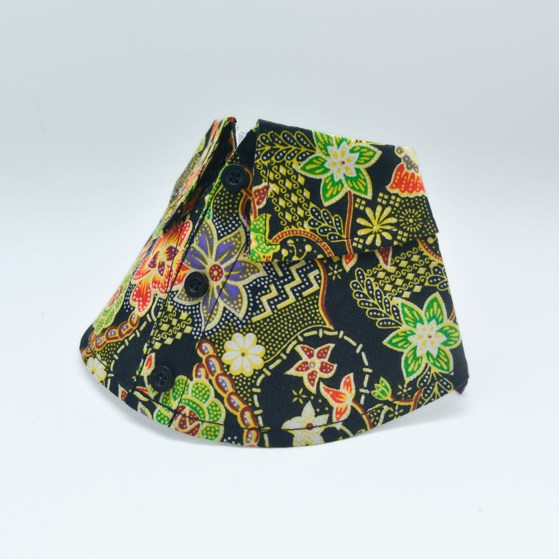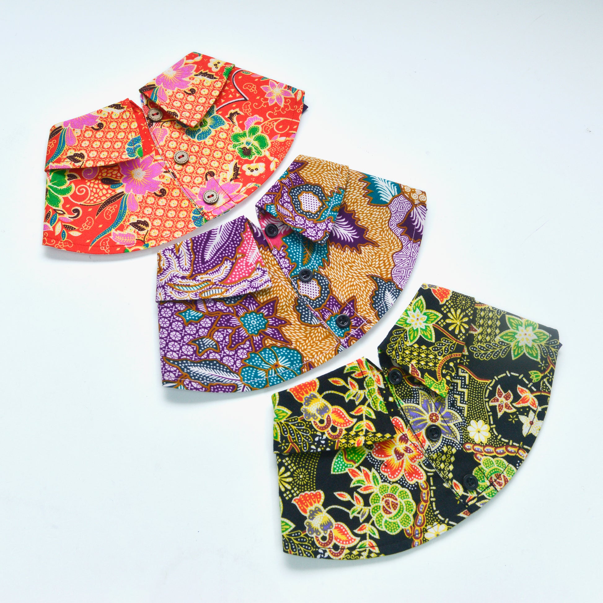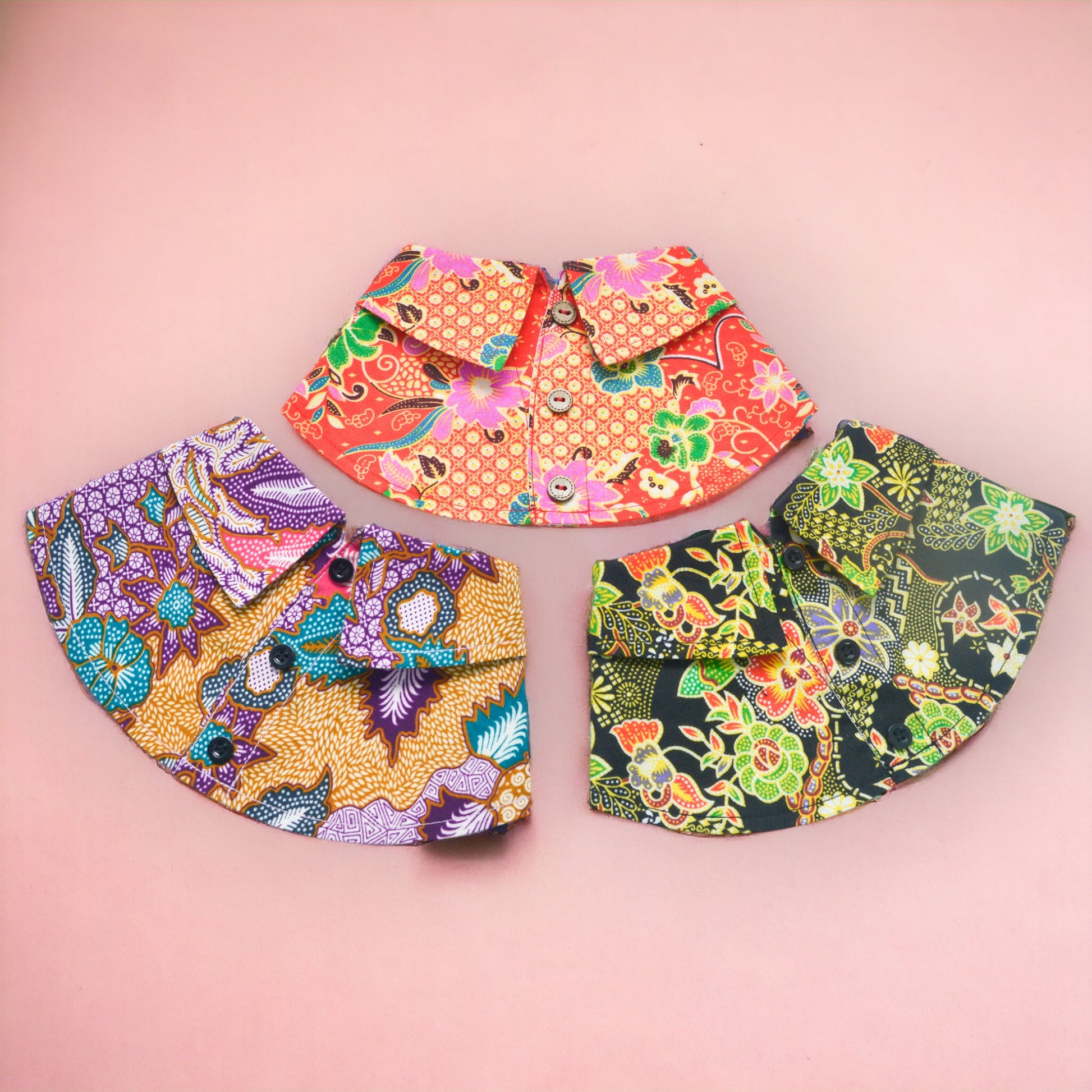 After your pet has worn the bib collar, gently wipe with a clean wet towel. For tough stains removal, engage professional dry-cleaning laundry service to help. Do not soak bib collars in water to avoid colour fading. Follow care label above to have a long lasting bib collar that your pet can wear again and again.