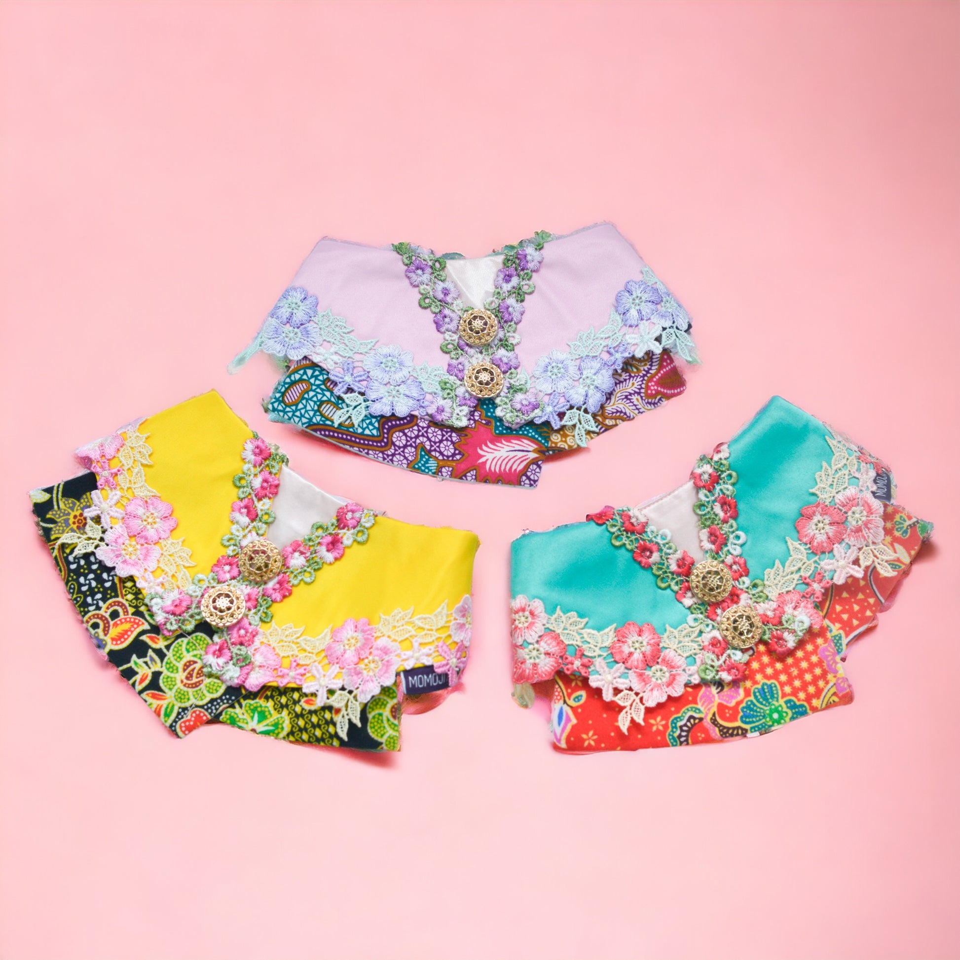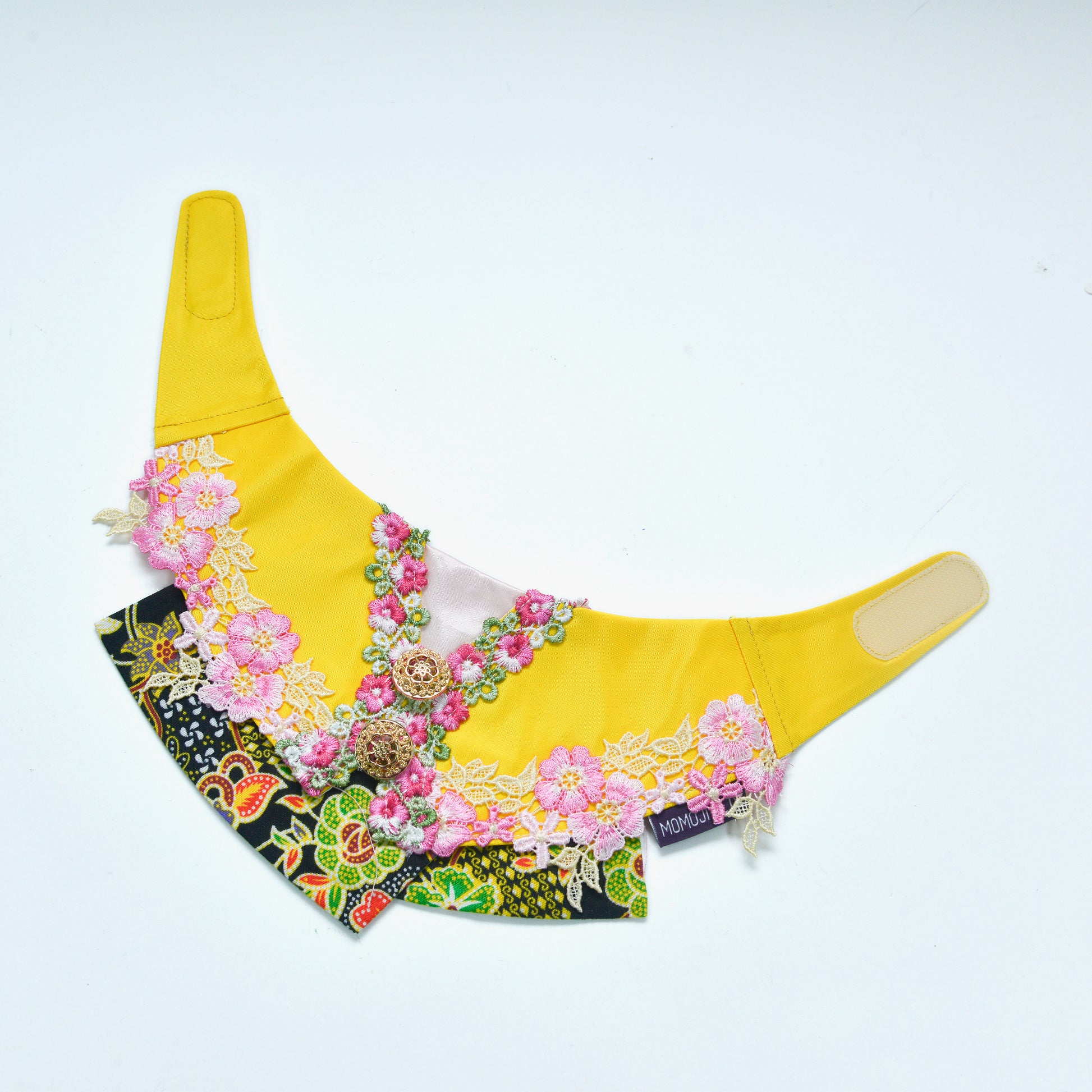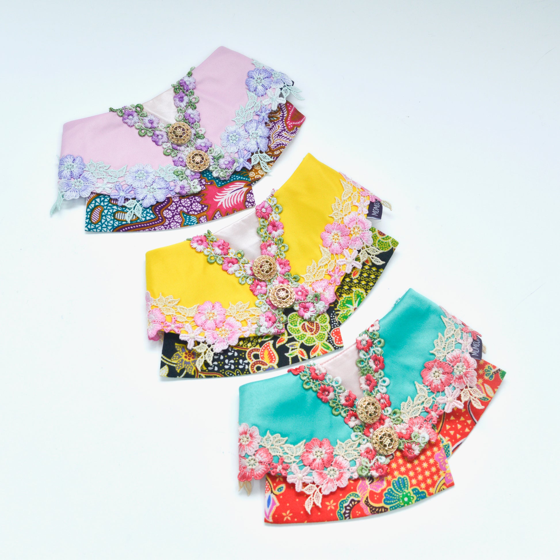 After your pet has worn the bib collar, gently wipe with a clean wet towel. For tough stains removal, engage professional dry-cleaning laundry service to help. Do not soak bib collars in water to avoid colour fading. Follow care label above to have a long lasting bib collar that your pet can wear again and again.